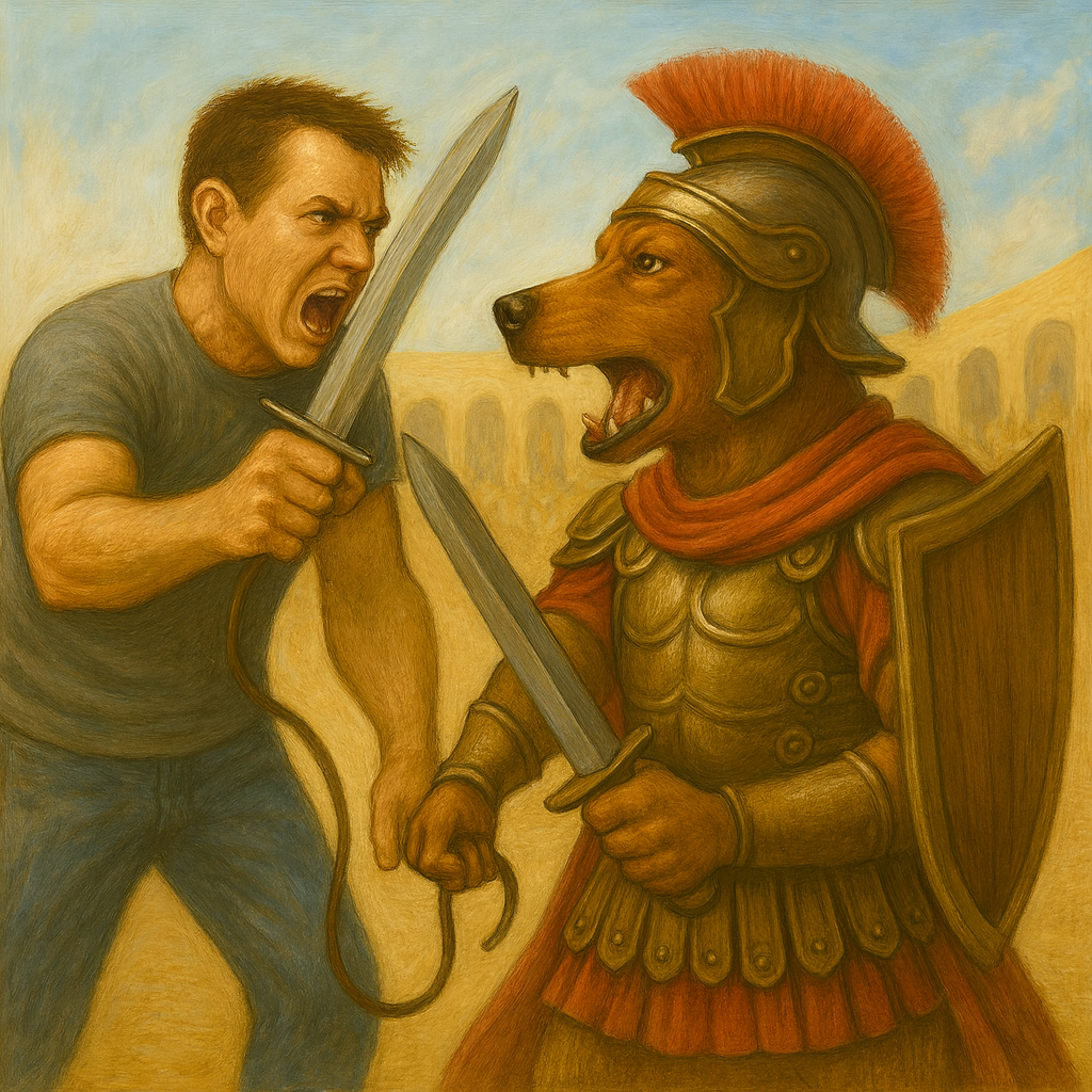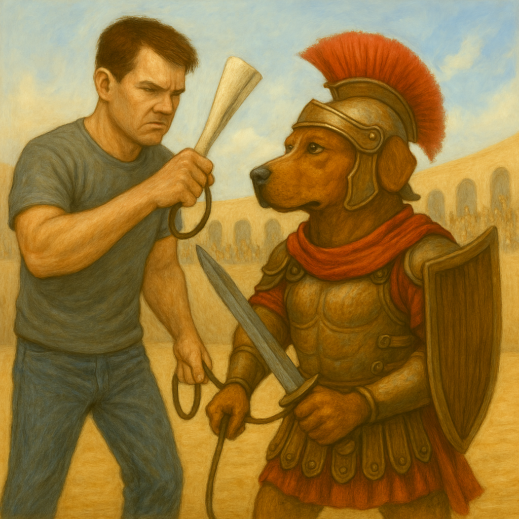 Čímž se stává pes, právě psím gladiátorem a časem lidi fyzickou sílu stupňují až do fáze, kdy už není v jejich silách působit psu větší bolest a pak dle povahy psa, se pes začne obracet proti majiteli, který nechápe, že se pes obrátil proti němu, protože přeci pes moc dobře ví, za co je trestaný, což je nejčastější omyl šířený mezi majiteli psů….